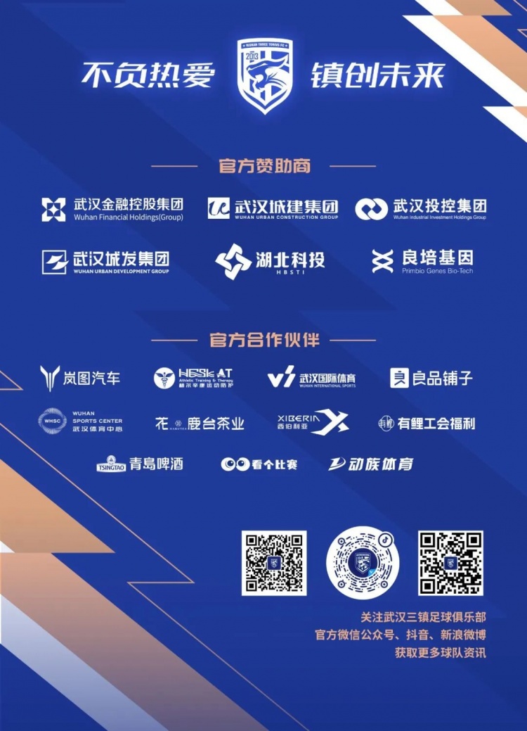 1月2日,武汉三镇官宣多条新闻,在俱乐部的赞助商配图页面,武汉金融控股集团为官方赞助商。而在俱乐部今天的官宣配图中,武汉金融控股集团已升级到与俱乐部名称并列的位置。