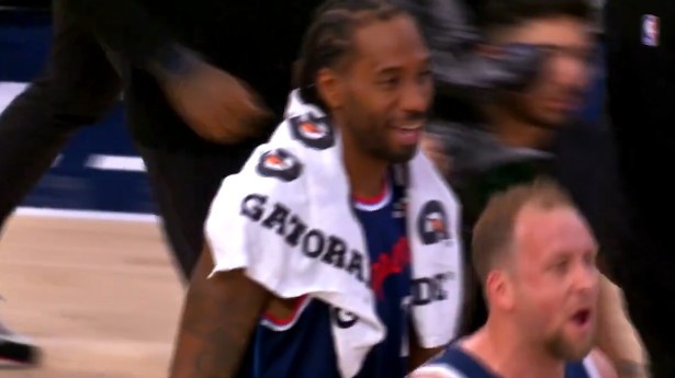 比赛结束后,两队爆发冲突,正在与对手拥抱致意的伦纳德对着旁边的裁判喊了句:they fighting (看,他们在打架),随后微微一笑。